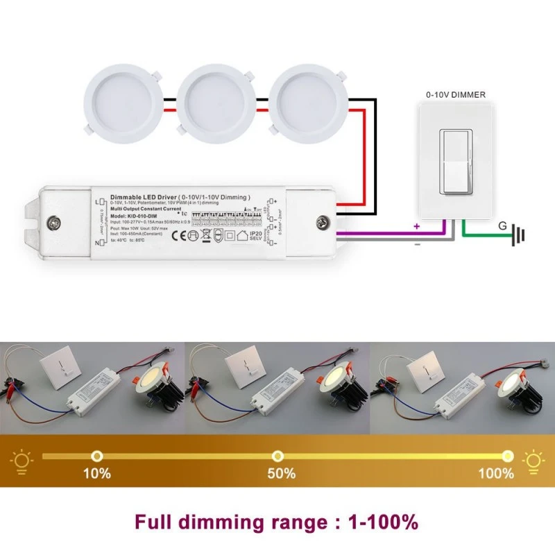 Starwell kualitas dhuwur 0-10V Dimming Constant Current Led Driver tumindak minangka jembatan antarmuka universal. Bisa ngowahi sinyal PWM digital (0% -100% siklus tugas) dadi output analog 0-10V sing stabil, dadi becik kanggo nyambungake sistem basis pengontrol mikro menyang pengontrol industri, PLC, utawa drive frekuensi variabel sing mbutuhake input voltase analog standar. Kosok baline, uga bisa ngasilake sinyal kontrol 0-10V sing lancar lan tanpa kelip-kelip langsung liwat potentiometer multi-giliran kanthi presisi dhuwur, cocok kanggo dimming driver LED lan tuwuh lampu. Piranti kasebut ndhukung sawetara sumber daya sing amba (biasane DC 3-42V) lan njamin konversi sinyal sing akurat lan dipercaya kanthi margin kesalahan sing sithik.