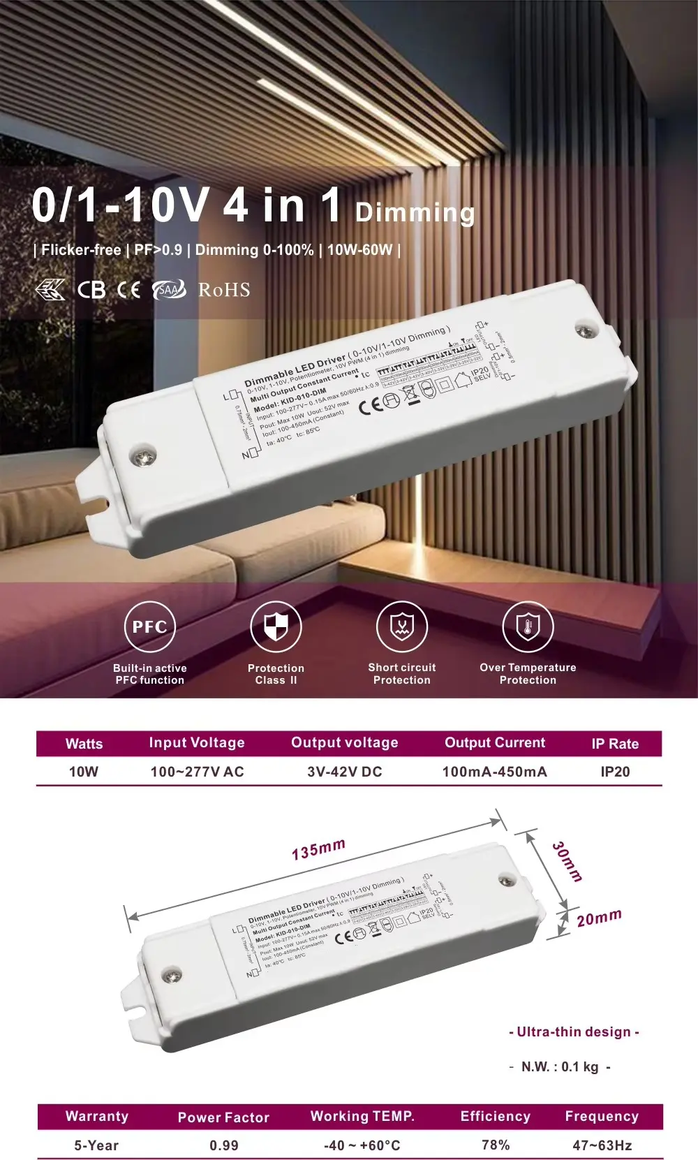 Starwell Constant Current 0-10V Dimmable Led Driver Spesifikasi: