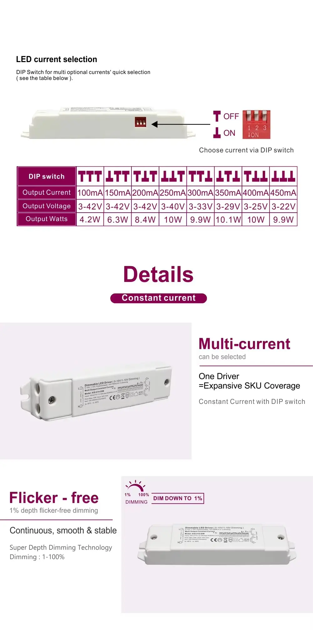 Dibangun kanggo menehi kinerja sing konsisten, dimmer iki ndhukung output DC 3-42V sing amba, dadi kompatibel karo macem-macem modul lan strip LED voltase rendah sing umum. Penerimaan voltase input sudhut amba njamin operasi sing stabil ing macem-macem lingkungan listrik. Bisa nyopir beban saka 10W nganti 60W, cocog banget kanggo spektrum aplikasi njero ruangan-saka lampu aksen, teluk, lan lampu tugas ing ngisor kabinet ing omah, nganti lampu sekitar sing luwih nuntut ing hotel, restoran, lan kantor.
