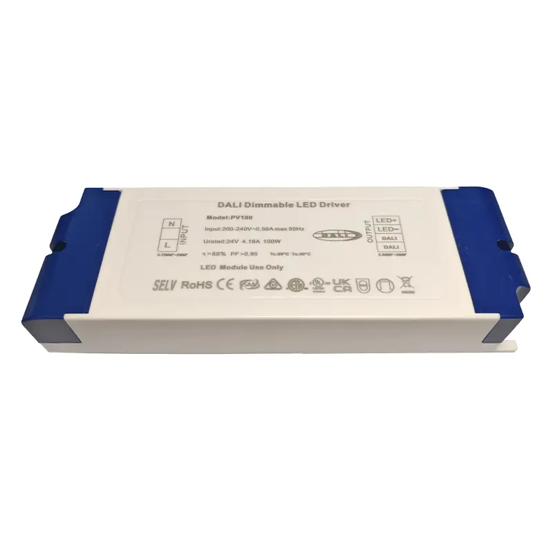 Minangka produsen profesional Driver DALI Tegangan Konstan ing China, Starwell bisa nyedhiyakake Driver DALI Tegangan Konstan 100W sing berkualitas tinggi kanggo aplikasi sing bisa dimmable 24V, sing nawakake output DC 24V / 4.16A sing stabil kanthi efisiensi nganti 90%. Ndhukung peredupan sing lancar, tanpa kelip-kelip saka 100% dadi 0.1% lan nduweni fungsi perlindungan sirkuit cendhak, over-voltase, kakehan, lan over-temperature.
