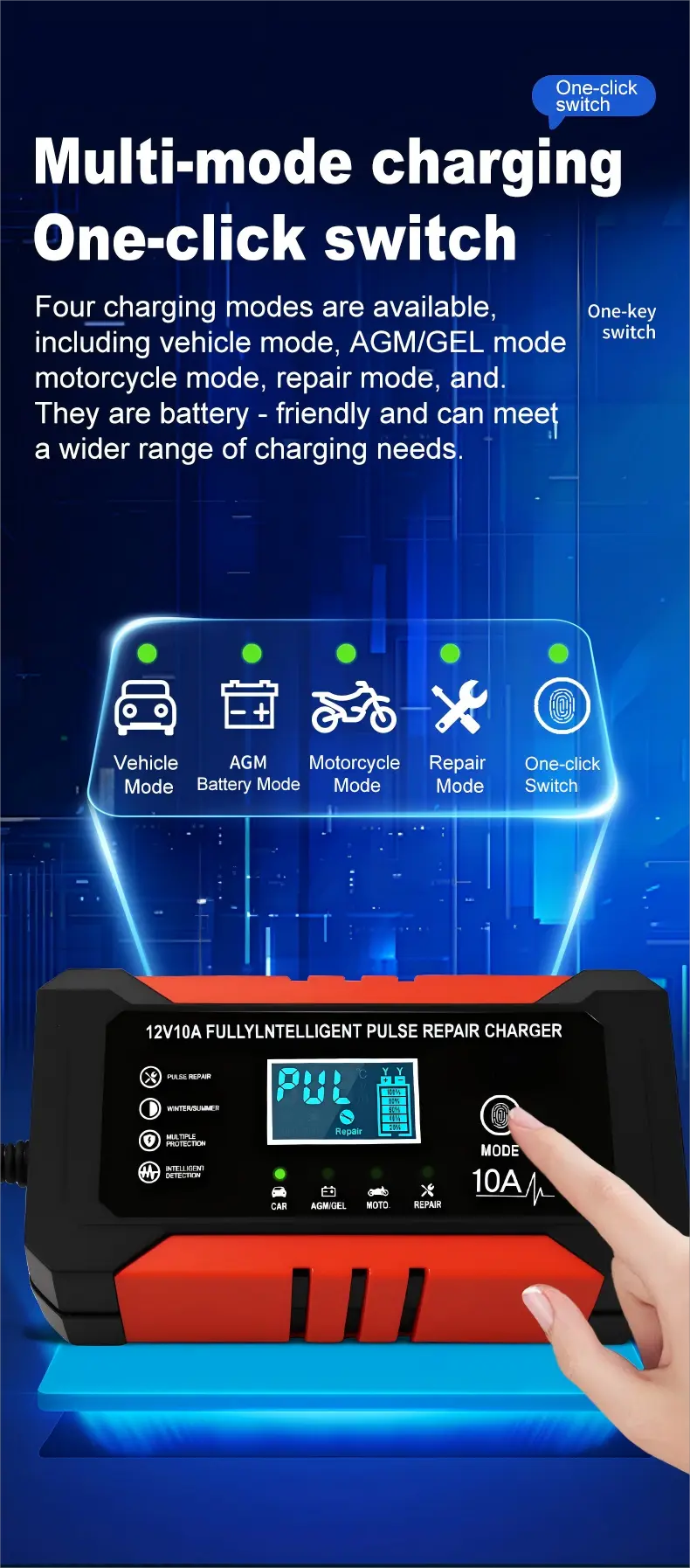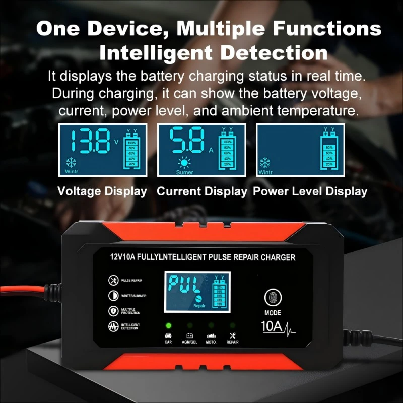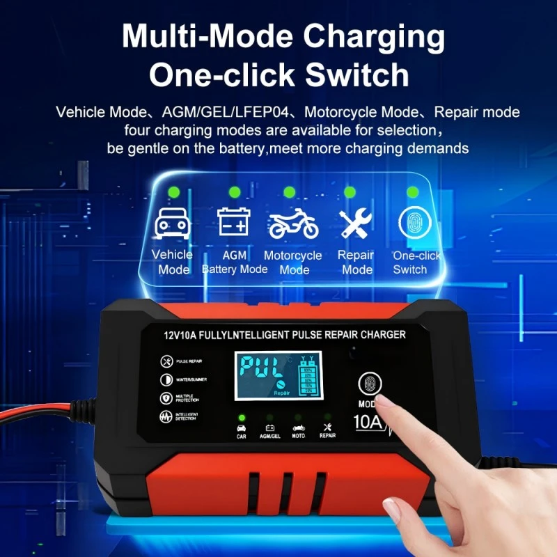 Dilengkapi spesifikasi teknis sing tepat, pangisi daya baterei cerdas iki nduweni kisaran voltase input universal 110 ~ 230V AC (50/60Hz), njamin kompatibilitas karo jaringan listrik ing saindenging jagad. Nyedhiyakake output 12V DC sing stabil kanthi arus pangisi daya 10A, nyedhiyakake daya sing konsisten kanggo ngisi ulang baterei kanthi cepet-bisa ngisi baterei asam timbal 100Ah kanthi kira-kira 10 jam, luwih cepet tinimbang pangisi daya 5A standar. Kanthi efisiensi energi luwih saka 95%, nyilikake sampah energi, dene omah aluminium kompak (170 × 90 × 50mm, 1.0kg) njamin portabilitas lan daya tahan.