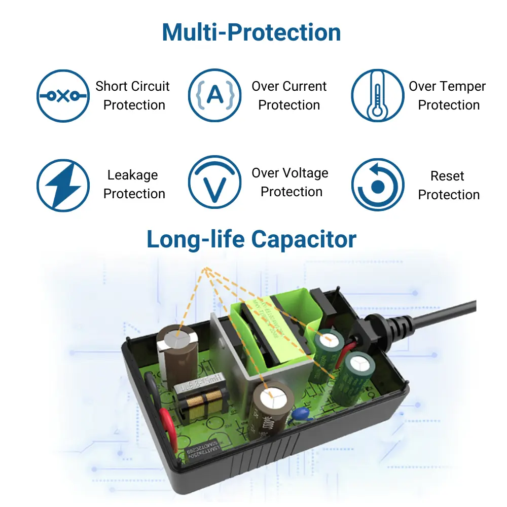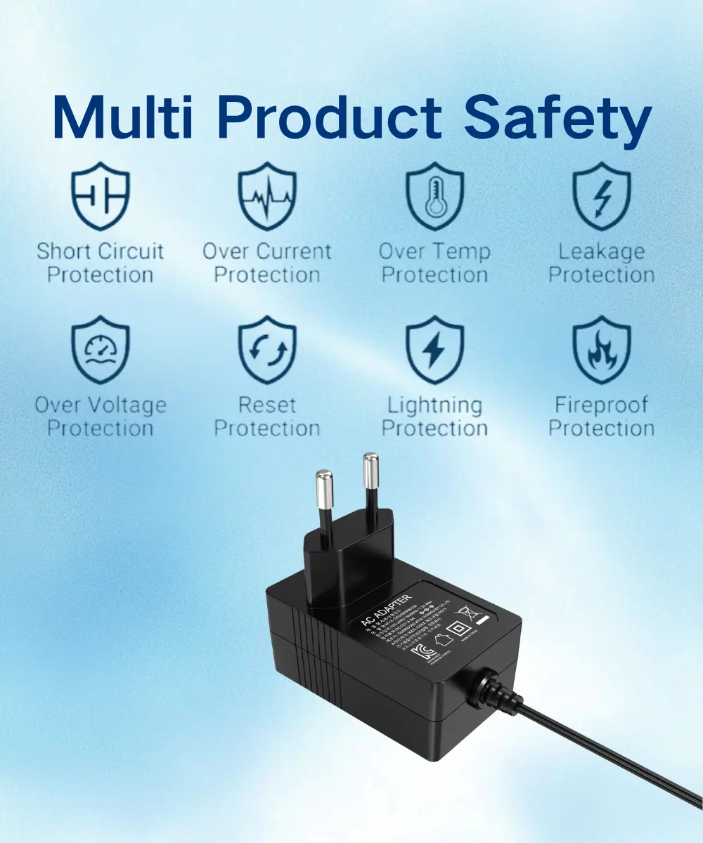 Desain plug-in kompak nyimpen papan. Nyedhiyakake adaptor daya output sing stabil lan konsisten, cocog banget kanggo router, ngalamun jaringan, lancip sing dipimpin, lan macem-macem piranti liyane.