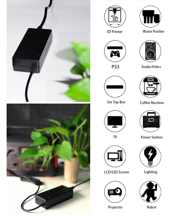 * Unit liyane kanggo seri 120W: 12V/15V/20V/24V/36V/48V kasedhiya * Safety: OCP/OVP/OTP, SCP, otomatis overload cut-off, liwat voltase cut-off, otomatis termal cut-off. * Kompatibilitas Wide: Lampu Strip LED, Printer 3D, transceiver radio ham, kamera CCTV, amp subwoofer mobil, amplifier audio, router nirkabel, Kucing ADSL, Humidifier, HUB, Keyboard, Speaker BT, Monitor, Webcam, DVR, NVR, sumber daya audio/video