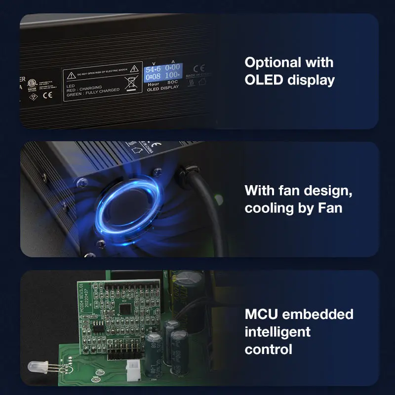 Pangisian Daya Serbaguna: Kompatibel karo macem-macem kendaraan listrik kalebu skuter, sepedha listrik, lan aplikasi profesional lan industri.