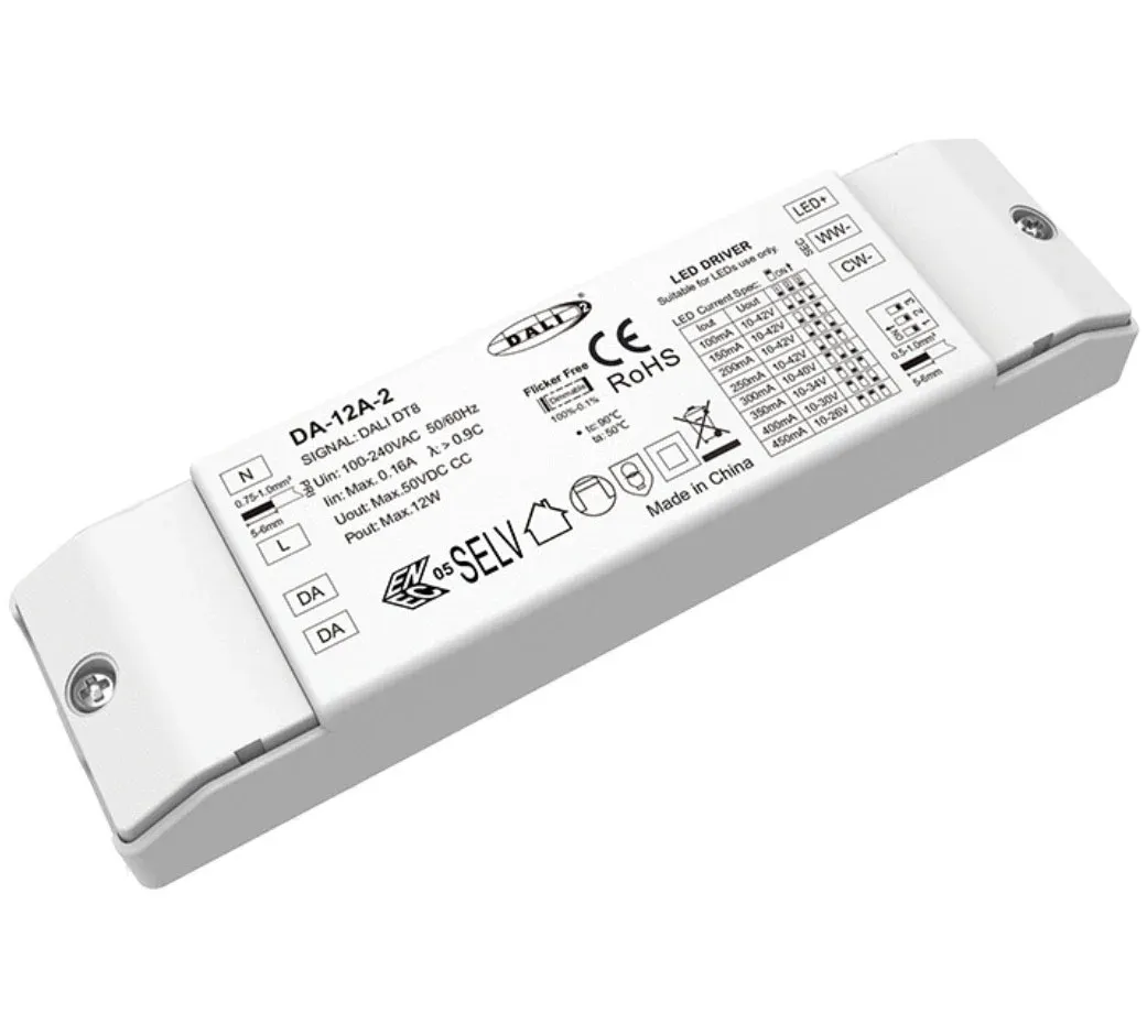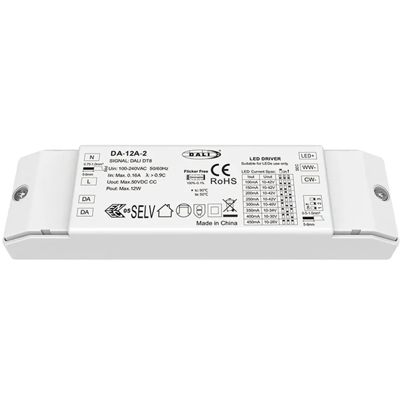 Driver LED Dimmable 12W DALI CW WW CCT pabrik STARWELL dirancang kanggo aplikasi lampu putih premium sing tunable sing mbutuhake kontrol sing tepat lan kinerja sing dipercaya. Driver kompak lan efisiensi dhuwur iki nyedhiyakake output arus konstan 12W (12V, 1000mA) sing stabil, njamin kinerja optimal lan umur dawa kanggo modul LED sing disambungake. Driver LED Dimmable 12W DALI CW WW CCT berkualitas tinggi kita nduweni antarmuka Dual DALI sing canggih, ndhukung loro DALI-2 dimming (DT8) kanggo peredupan lancar 10% -100% lan CCT mandiri (Suhu Warna Korelasi) saka 2700K putih anget nganti 6500K awan sing adhem. Kanthi efisiensi khas sing nyengsemake> 90% lan Faktor Daya sing dhuwur (PF> 0,9), nyuda sampah energi lan beban kothak. Dumunung ing kasus IP20 sing kompak, nawakake operasi full-load ing kisaran suhu -20 ° C nganti + 50 ° C, dadi solusi daya serbaguna lan cerdas kanggo arsitektur, komersial, lan lampu omah sing paling dhuwur.
