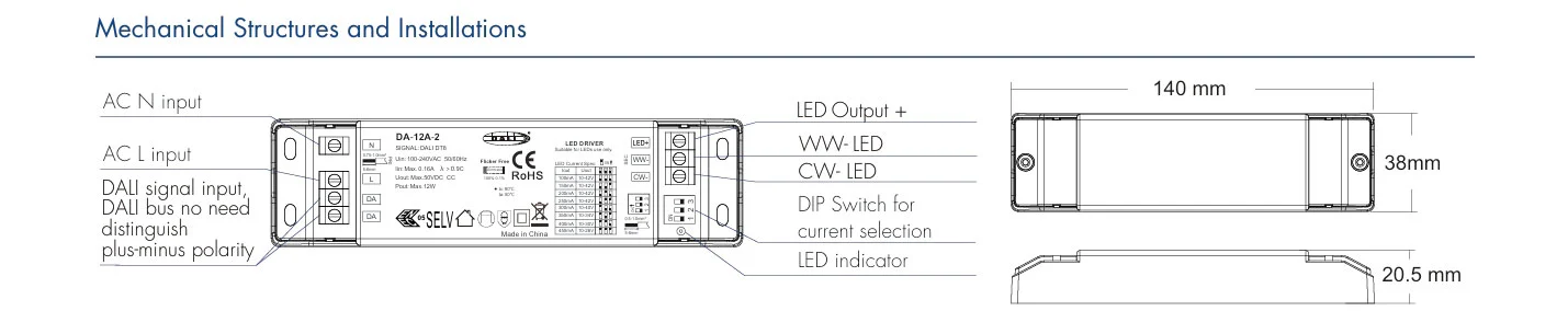 Dumunung ing kasus IP20 sing kompak, Driver LED Dimmable iki nyederhanakake instalasi sanajan ing papan sing terbatas kayata profil LED utawa omah peralatan. Kanthi nggabungake output Arus Konstan, tuning CCT sing amba, lan kompatibilitas DALI-2 standar industri, dadi pembalap sing cocog lan tahan mangsa kanggo lampu mudhun putih-putih, perlengkapan linear, lan lampu arsitektur-seamlessly nggabungake menyang ekosistem lampu cerdas modern minangka Driver LED DALI CCT Dimmable Konstan.