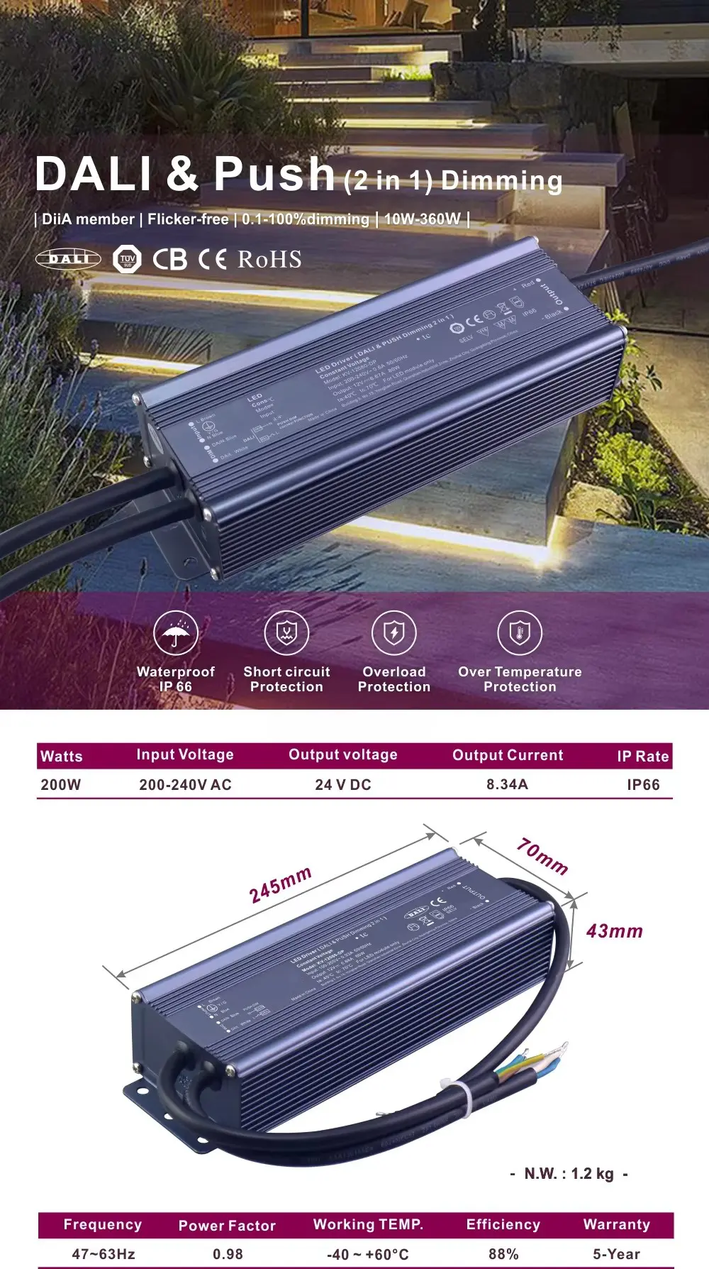STARWELL kualitas dhuwur 12V / 24V voltase LED driver integrates majeng DALI-2 protokol lan pangguna-loropaken Push Dim fungsi ing siji, piranti mangsa-siap. Direkayasa kanggo arsitek, perancang lampu, lan installer sing nuntut keunggulan teknis lan keluwesan praktis, driver iki nyederhanakake proyek rumit nalika menehi kinerja sing luar biasa.