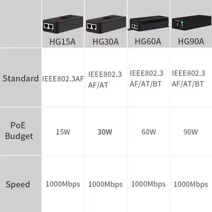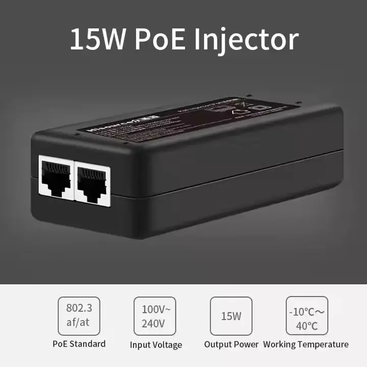 Selaras karo IEEE 802.3af, injektor PoE 15W iki nyedhiyakake daya 48V 15W sing stabil kanggo macem-macem piranti PoE. Desain standar njamin sumber daya sing aman, dipercaya lan kompatibilitas sing kuat minangka adaptor PoE desktop profesional.