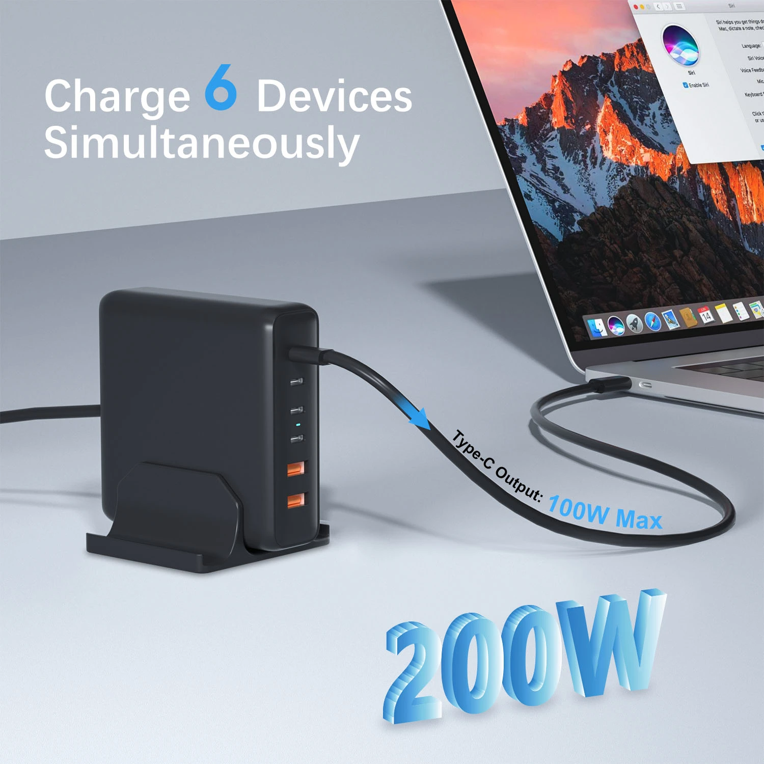 Gan 200W Fight Charger 4 USB-C + 2 USB-3 200W Charger