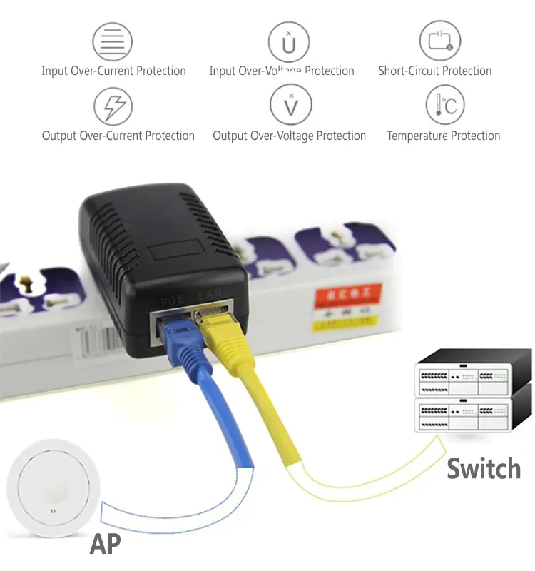 2 Port POE Injector ngirim voltase stabil lan saiki karo ripple kurang, mesthekake operasi stabil long-term. Tegangan input lebar 100–240VAC adaptasi karo jaringan listrik global. Dibangun ing over-voltage, over-current, short-circuit lan over-temperatur proteksi njogo loro port dual POE injector lan peralatan disambungake.