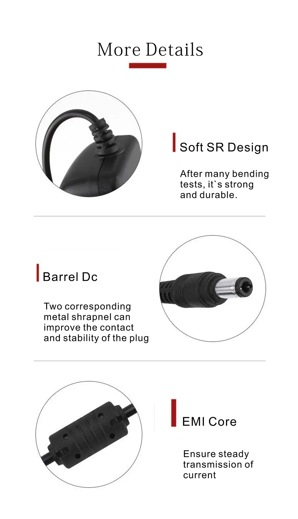 2. Tarik Daya: Watt piranti sampeyan kudu kurang saka 72W. Adaptor 3A bisa menehi daya piranti teken 3A utawa kurang ing 24V.
