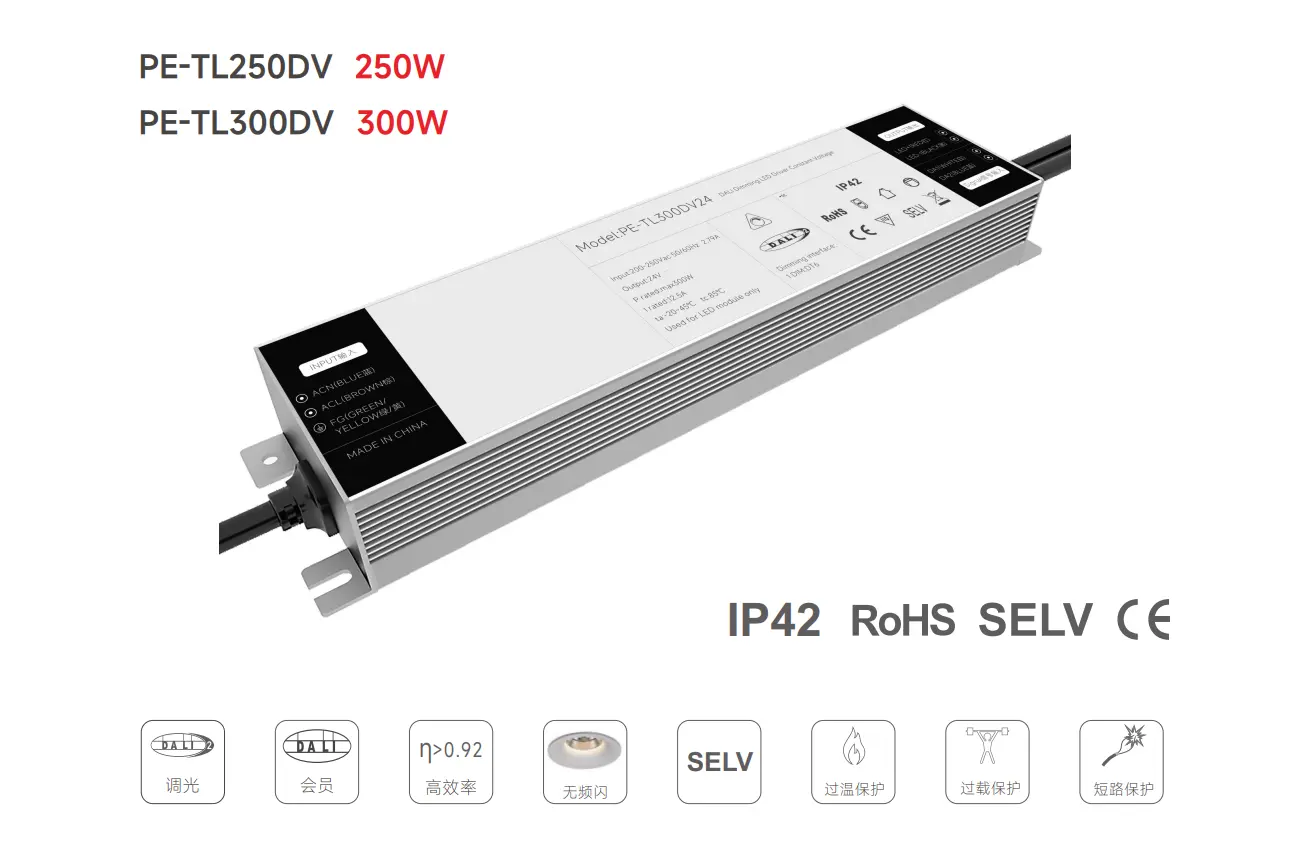 Nampilake kisaran voltase input sing amba saka 100-277V AC, beroperasi kanthi efisien ing jaringan listrik global kanthi efisiensi energi nganti 92%, nyuda konsumsi daya lan ngasilake panas. Proteksi sing dibangun saka overvoltage, over-current, short-circuit, lan over-temperature njamin linuwih jangka panjang lan operasi sing aman.