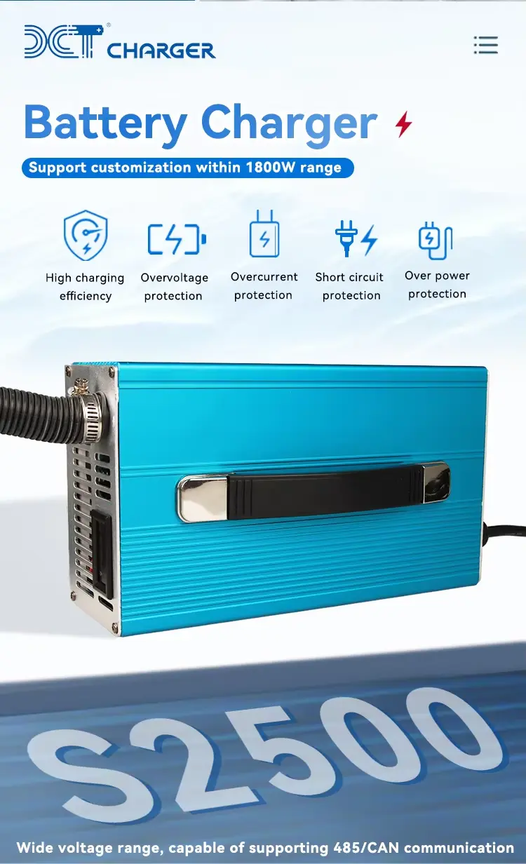 Kanthi struktur kasar, kompak lan boros panas sing apik, cocok kanggo kendaraan listrik, mesin pembersih industri, sistem panyimpenan energi, AGV, lan peralatan laut. Iki tundhuk karo sertifikasi keamanan internasional lan ndhukung konektor lan label sing disesuaikan. Nggabungake efisiensi, stabilitas, lan daya tahan sing dhuwur, pangisi daya iki minangka pilihan sing cocog kanggo sistem baterei 24V kapasitas medium nganti gedhe.