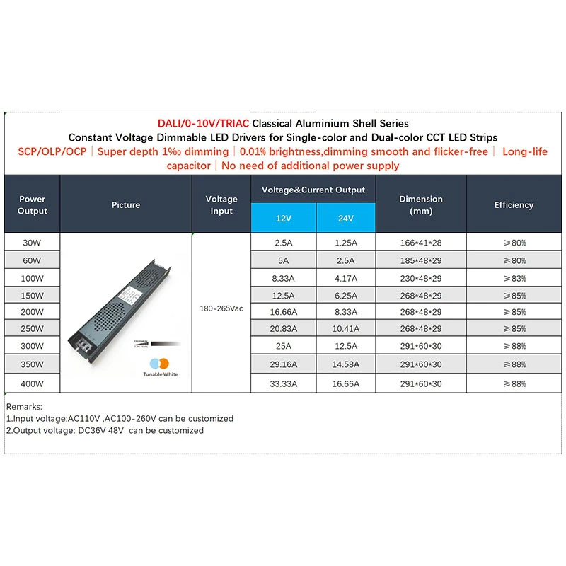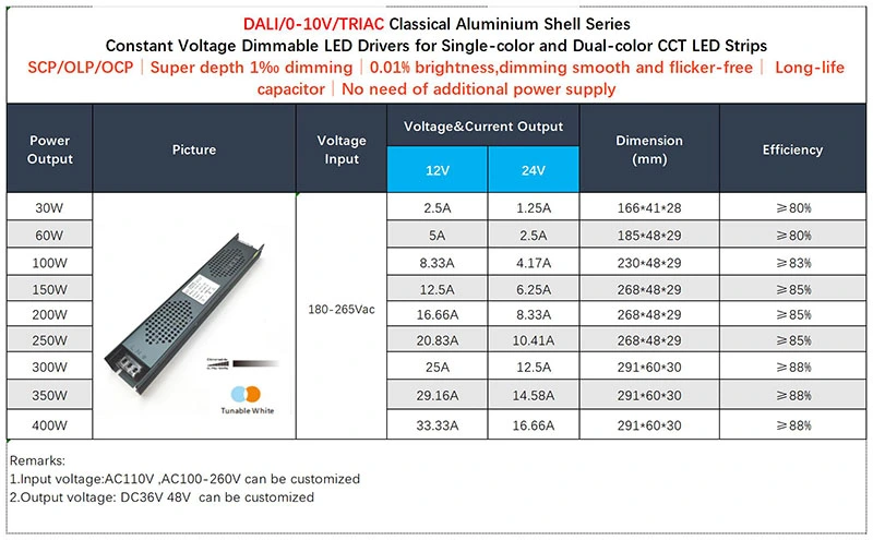 Driver LED dimmable DALI CCT voltase konstan iki ngirimake output 12 / 24VDC kanthi toleransi voltase ± 1% lan arus maksimal 2.5A, dilengkapi karo 4 proteksi safety sing bisa pulih otomatis lan operasi stabil ing -20 ℃ nganti +45 ℃. Kanthi rating IP20, sertifikasi CE / TUV / RoHS lan MTBF 190,900 jam, driver LED dimmable DALI CCT voltase konstan iki njamin kinerja awet lan aman ing macem-macem skenario cahya njero ruangan.