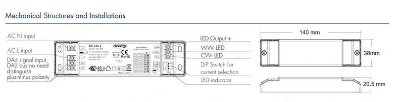 Driver LED Dimmable DALI CCT 30W Tegangan Konstan iki tundhuk karo protokol DALI-2 DT8, ndhukung 0.1% -100% peredupan CCT tanpa kelip-kelip ultra-lancar lan kontrol saluran dual siji-alamat. Iki dipasangake kanthi lancar karo kabeh pengontrol master DALI mainstream kanggo pemrograman pemandangan lan kontrol klompok, kanthi sampurna nyukupi panjaluk regulasi sing tepat babagan lampu cerdas profesional.