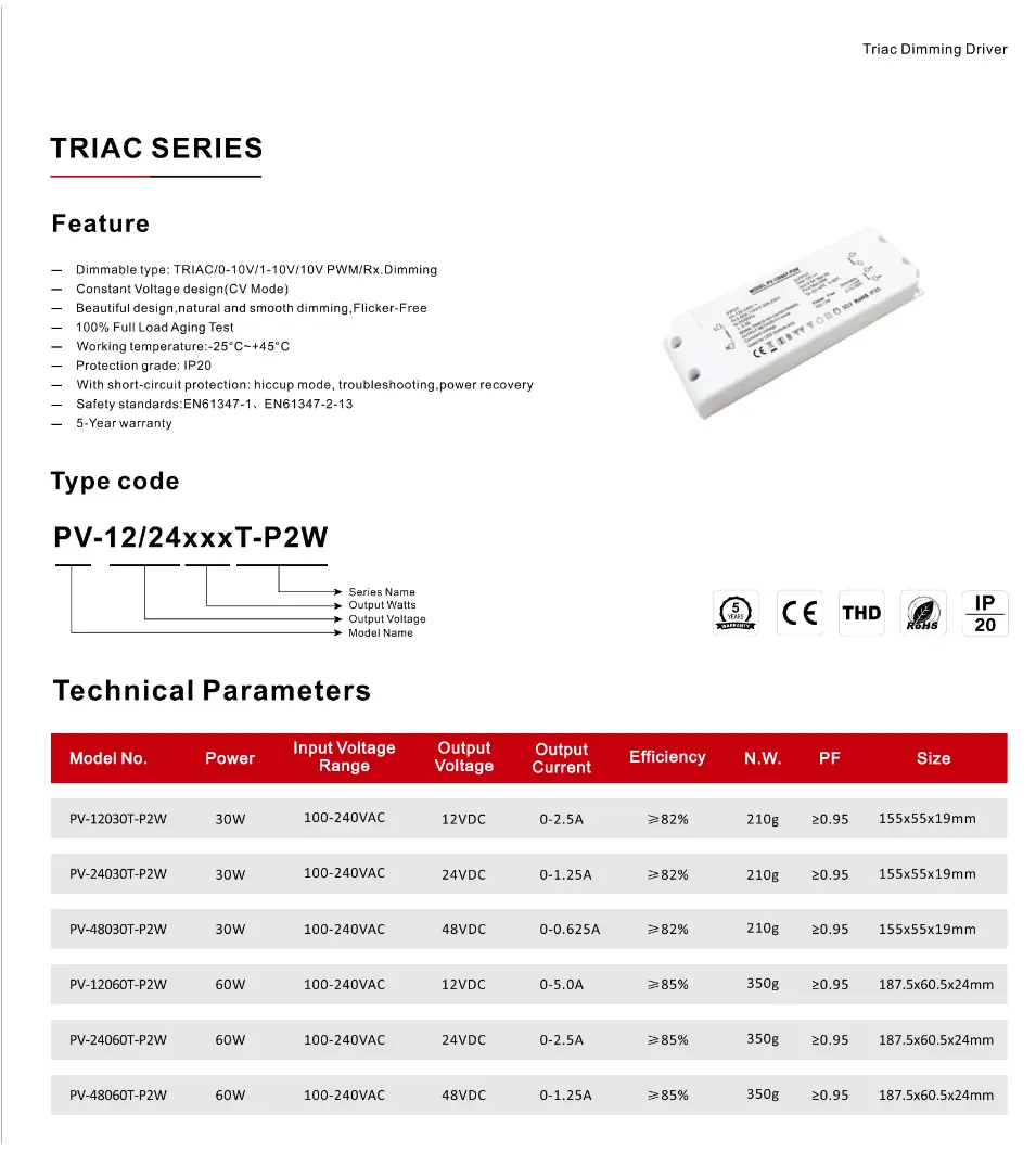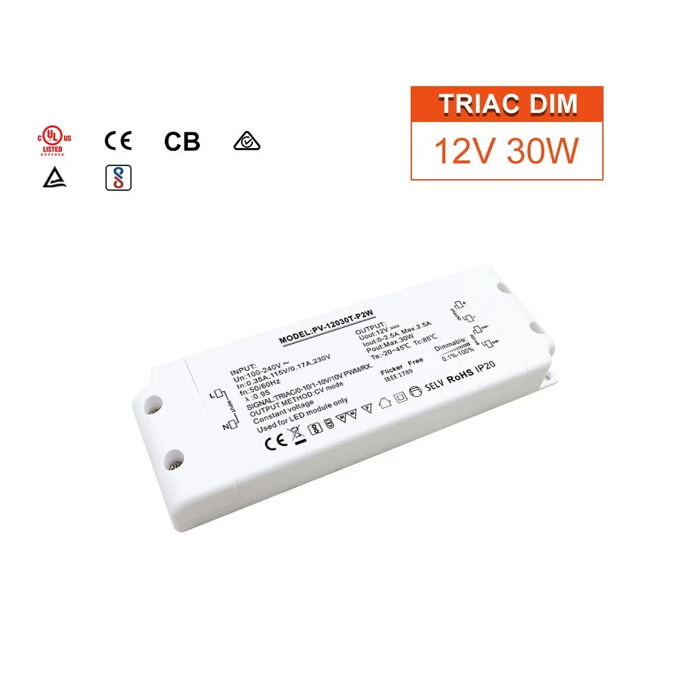Minangka stabil voltase Power Supply Triac dimming driver mimpin, menehi output voltase 12V DC pancet. Sumber daya dimmable triac 12V 30W iki nganggo komponen berkualitas tinggi lan desain sirkuit canggih, njamin voltase output stabil ing saindenging kisaran dimming lengkap lan kanthi dhasar ngilangi lampu kedhip. Iki minangka driver sing dipimpin triac dimming sing ora kedhep kanggo panggunaan njero ruangan. Fitur non-kerlip ora mung nggawe lingkungan visual sing nyaman lan sehat nanging uga efektif nglindhungi sumber lan modul cahya LED sensitif, ndawakake umur sakabèhé saka peralatan cahya.