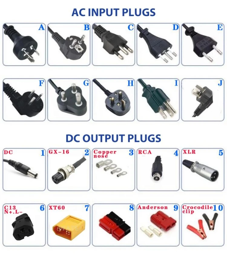 · Ndhukung baterei timbal-asam (banjir, AGM, gel), lithium-ion (LiFePO₄), Ni-MH, lan Ni-Cd