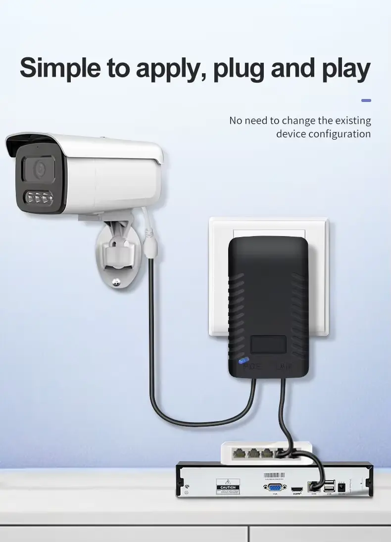 Kamera IP Jarak Jauh: Sampurna kanggo nguwasani 48V PTZ (Pan-Tilt-Zoom) utawa kamera peluru sing dipasang ing lokasi sing adoh.
