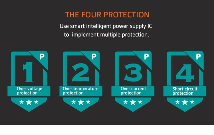 Perlindhungan suhu luwih saka suhu, ganti, luwih saka-voltase, saiki, proteksi sirkuit cendhak mode voltase tetep, tliti dhuwur, swara kurang |
