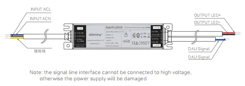 Wire miturut identifikasi produk, lan mbayar manungsa waé menyang arah positif lan negatif lan input lan output. Cathetan: