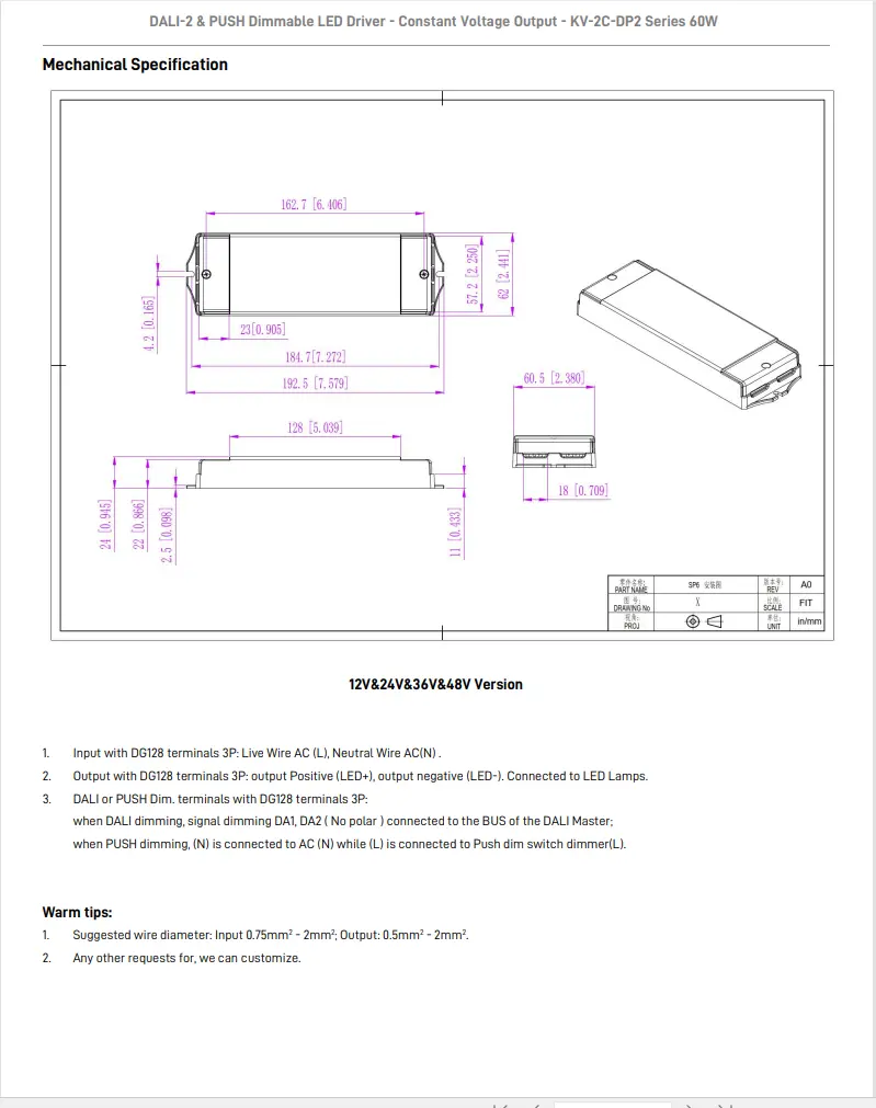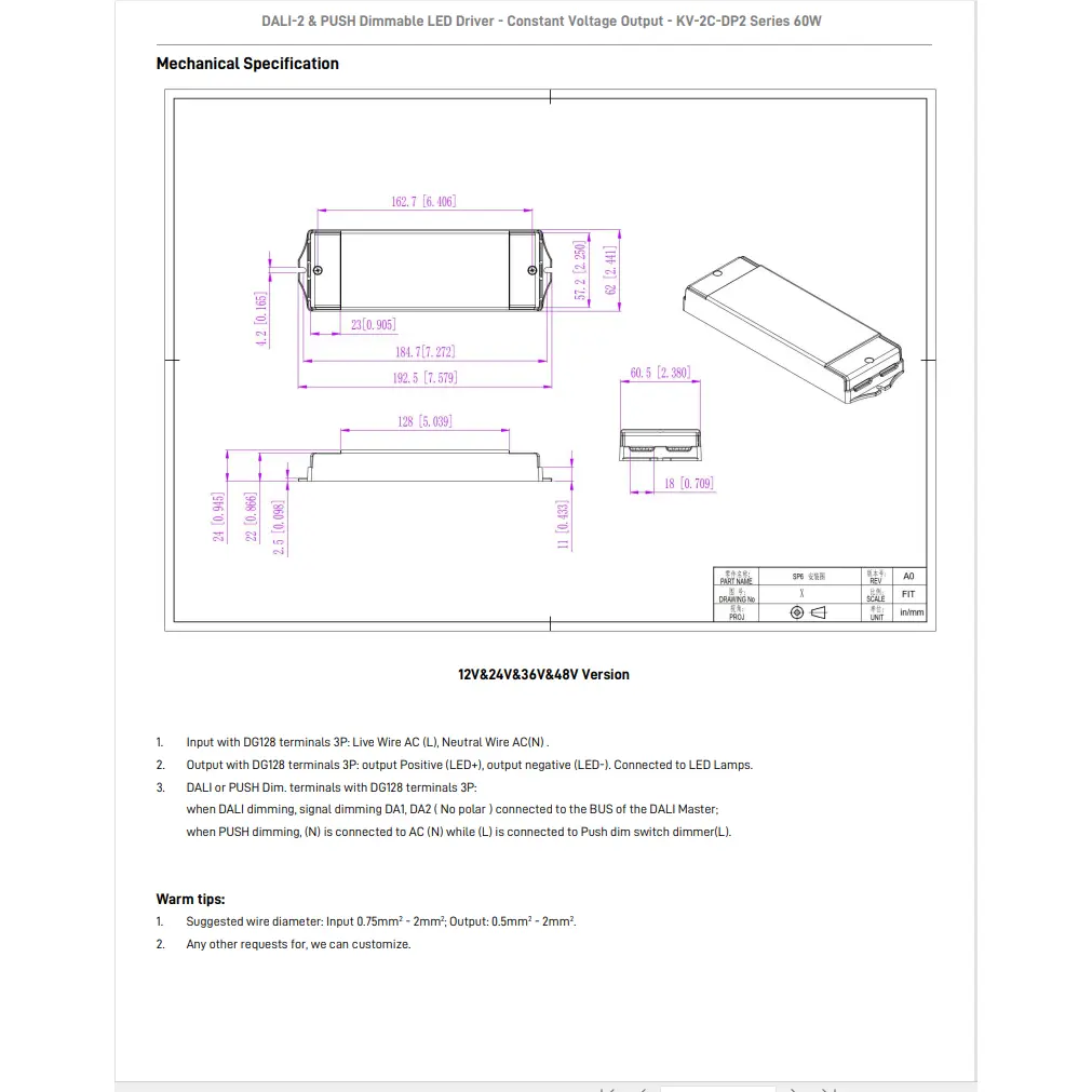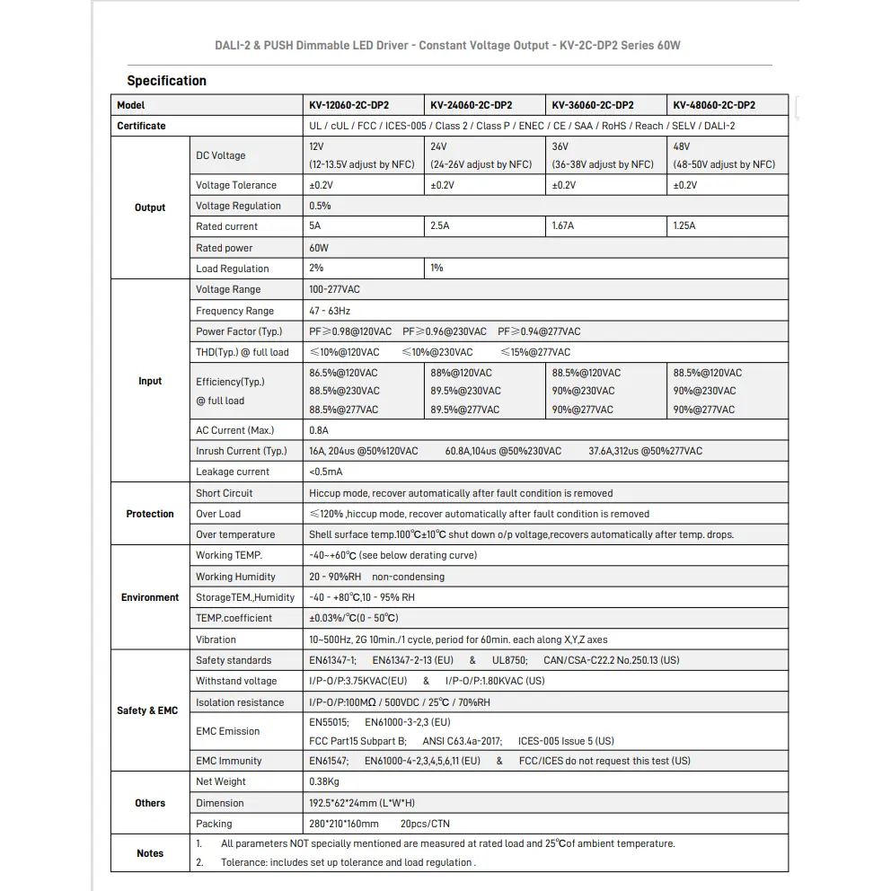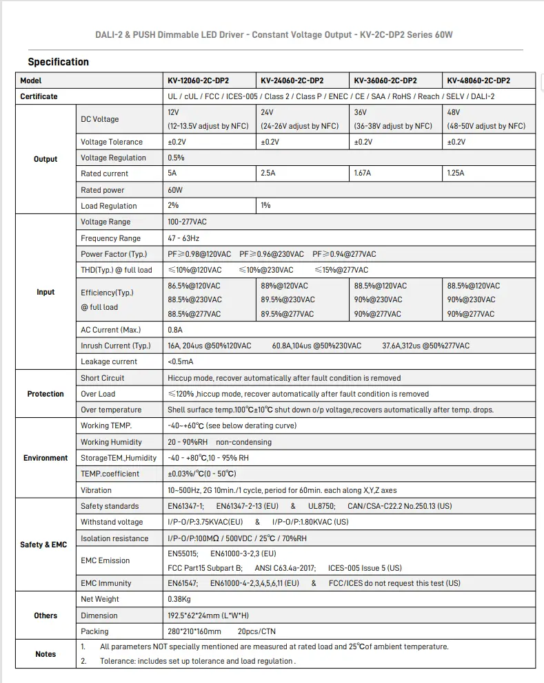 Fungsi dimming: DALI-2 & PUSH 2 in 1 dimming (CCT). PWM output frekuensi 4KHz.