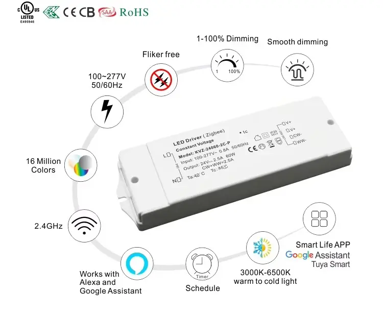 Rasakake kombinasi konektivitas cerdas, kontrol sing tepat, lan kinerja sing dipercaya karo driver dimming 60W ZigBee TUYA.