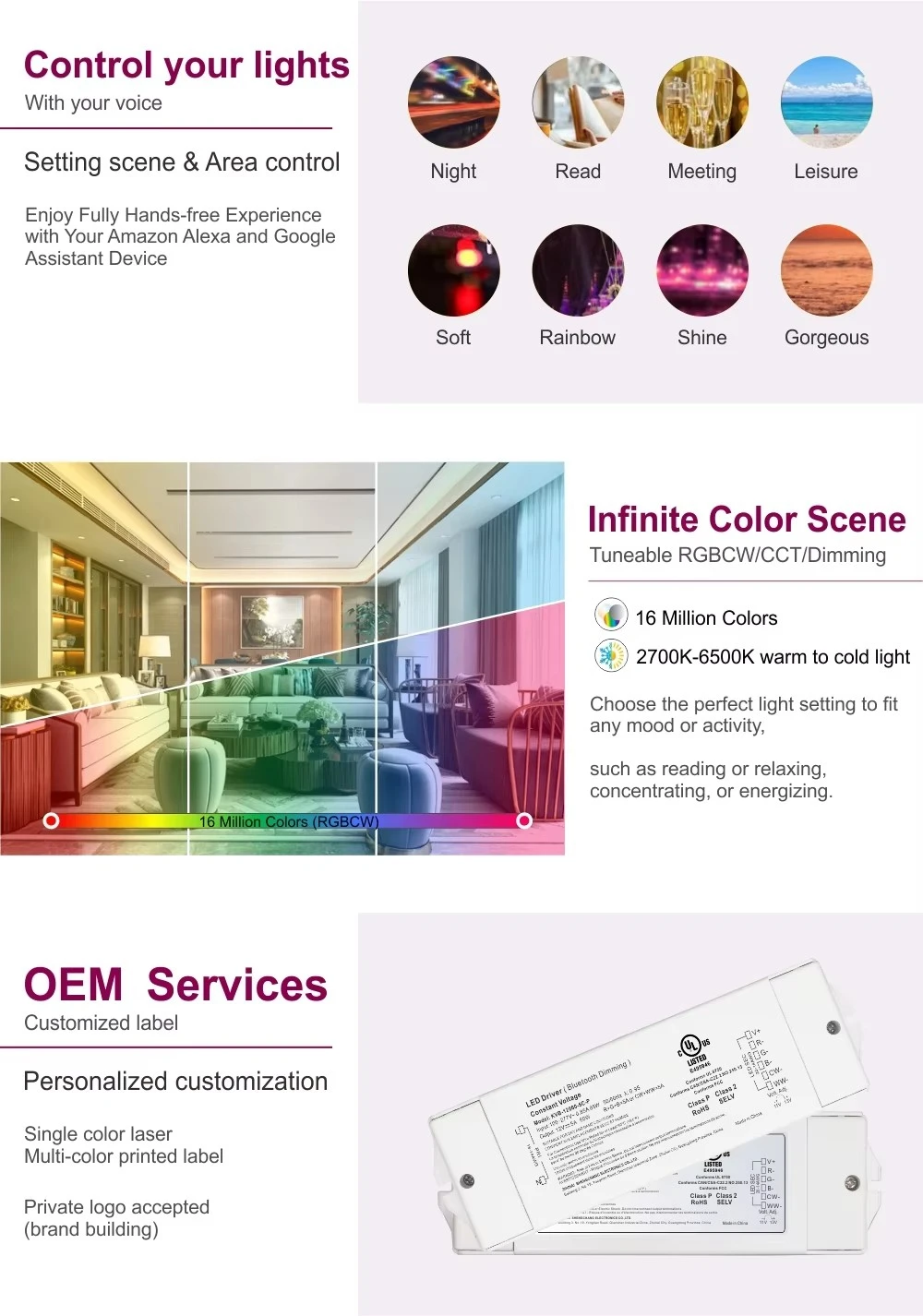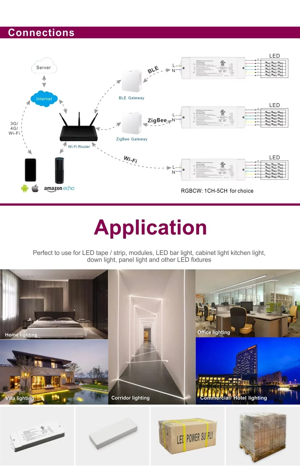 Cocog kanggo macem-macem aplikasi lampu LED, driver iki nggabungake konektivitas cerdas kanthi kinerja sing kuat lan didhukung garansi 5 taun sing lengkap.