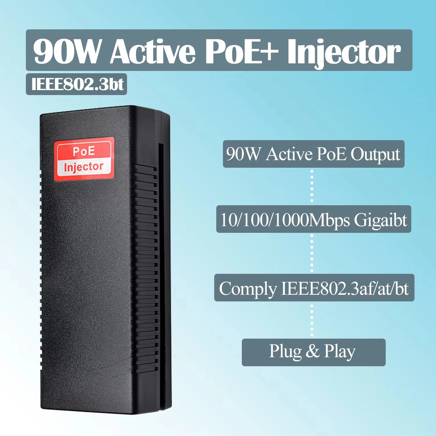 Minangka produsen sumber daya profesional ing China, Starwell ngenalake Active 90W PoE Injector, sing ndhukung mode Aktif lan Pasif. Dilengkapi sirkuit deteksi daya cerdas, kanthi otomatis ngenali syarat daya piranti sing disambungake lan nyetel output sing cocog; Salajengipun, sawijining dibangun ing mekanisme pangayoman gagal-aman njamin safety saka terminal non-standar.