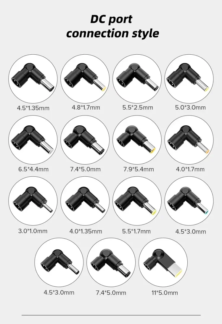 Direkayasa kanggo konversi daya sing dipercaya lan efisien, adaptor desktop 65W iki kanthi lancar ngowahi arus bolak-balik (AC) saka stopkontak tembok standar dadi arus langsung sing stabil (DC), nyukupi kabutuhan daya saka macem-macem piranti elektronik.