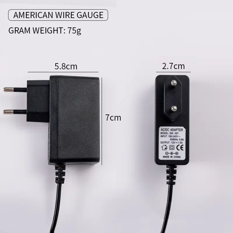 Fitur Sorotan: StarWell Adaptor Daya Eu Wall Mount Ngalihake kualitas tinggi (High and 12v1.5A Output opsi sing cocog kanggo pasar EU lan Amerika.