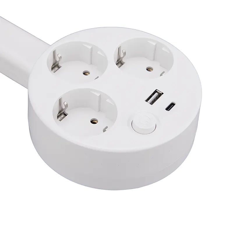Extender Outlet Eu Wall Fungset sing Komplek Saiki Kompak duwe telung toko EU standar bebarengan karo port USB-C lan siji USB-port, dadi sampurna kanggo macem-macem setelan. Iki minangka stasiun pangisiuan sing apik kanggo kantor, asrama, ruangan umbah-umbah, utawa wilayah apa wae sing duwe toko sing winates.