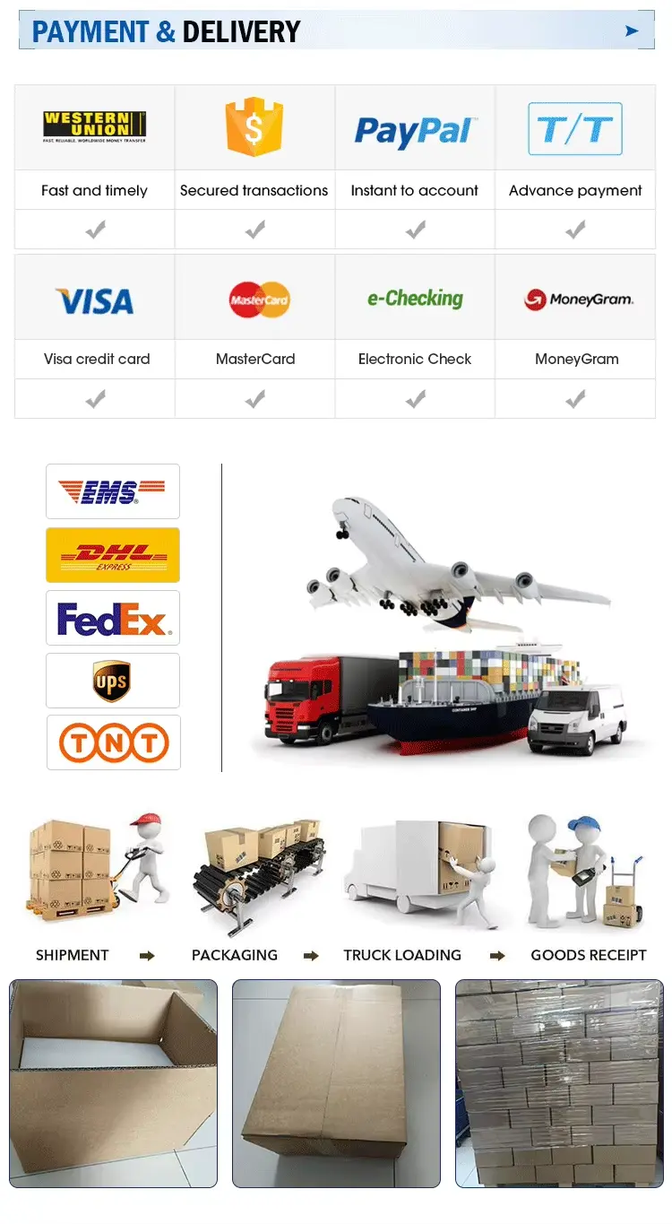 A4: Pesenan cilik dikirim kanthi ekspres (FEDEX, DHL, EMS, TNT). Pesenan gedhe dikirim kanthi segara utawa udhara. rega FOB kasedhiya. Sampeyan bisa nggunakake forwarder utawa kita.