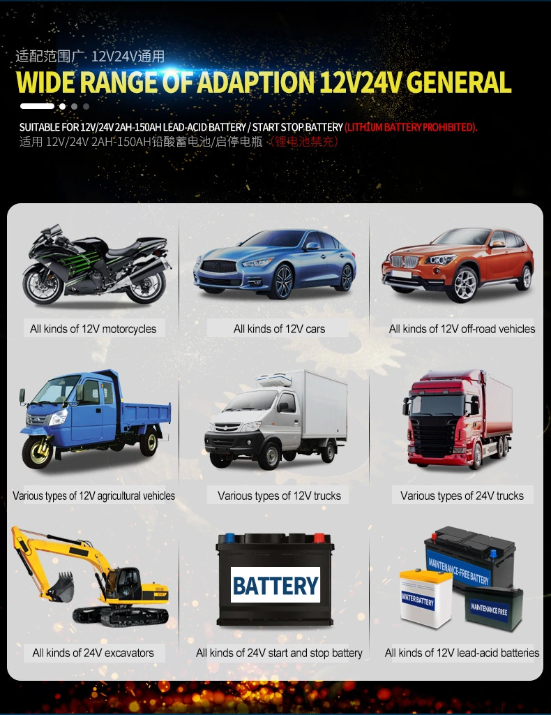 · Kompatibilitas Baterei Wide: Bisa digunakake karo baterei AGM, EFB, GEL, lan timbal-asam standar (start-stop), njamin aplikasi sing fleksibel ing sistem modern lan tradisional.