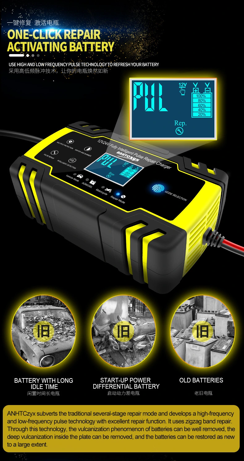 · Fungsi Repair Pulse: Migunakake teknologi pulsa frekuensi dhuwur kanggo nyuda kristalisasi timbal sulfat (sulfasi), mbantu mulihake kapasitas sing ilang ing baterei sing wis tuwa utawa kurang.