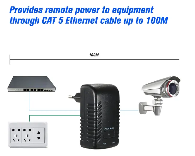 Direkayasa kanggo standar 48V IEEE 802.3af, Adaptor Ethernet Wall-mount Non-Standard iki nyedhiyakake output daya 15W sing stabil, ndhukung paling akeh kamera IP bertenaga POE, sing biasane mbutuhake 15-25W (ora kalebu model PTZ kanthi daya dhuwur). Iki uga bisa digunakake kanthi andal karo telpon IP lan piranti liyane sing tundhuk karo standar 802.3af utawa 802.3at POE, nawakake kompatibilitas sing luwih akeh ngluwihi persiyapan pengawasan. Dibangun kanggo operasi jangka panjang sing stabil, Wall Plug POE Injector nggabungake daya lan transmisi data liwat kabel Ethernet siji, ngethok wektu instalasi lan biaya materi kanggo proyek jaringan omah, komersial, lan keamanan.
