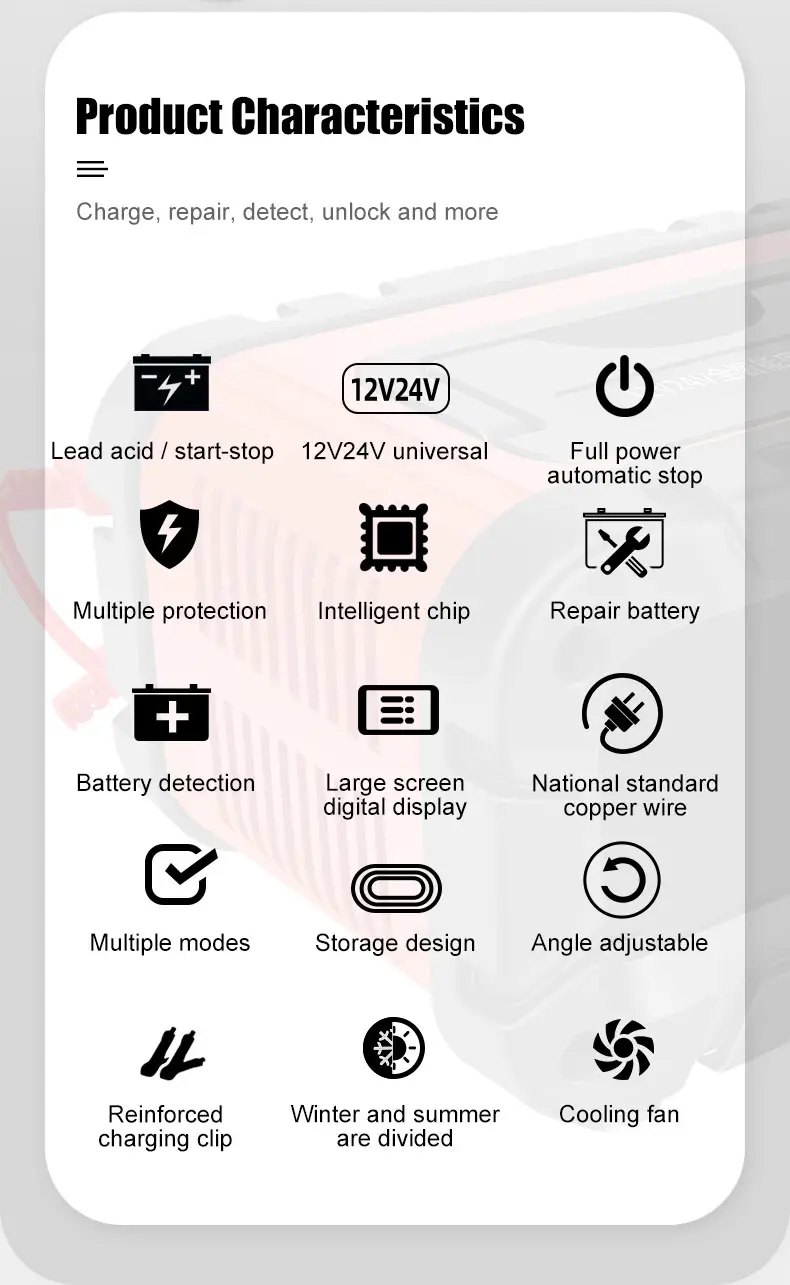 Q4: Apa sing nggawe pangisi daya iki beda karo model standar? A4: Ora kaya pangisi daya dhasar, TK-600 Fully Automatic Intelligent Lead Acid LiFePO4 Battery Charger nggunakake pangisi daya multi-tahap sing cerdas kanthi kompatibilitas kimia ganda, njamin umur lan efisiensi baterei sing luwih apik.