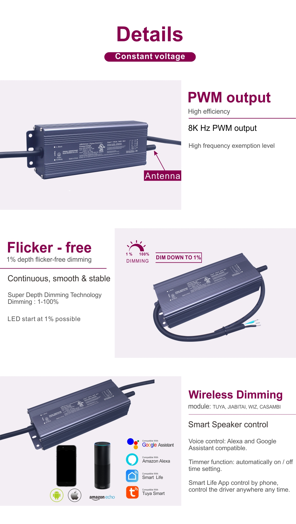 Minangka produsen utama lan supplier adhedhasar ing China, Starwell setya kanggo ngirim kualitas Tuya Zigbee Wireless Dimming Konstan Voltage 120W LED Driver, kang dirancang kanggo sistem cahya LED cerdas sing mbutuhake output daya dhuwur, kontrol nirkabel stabil, lan Manajemen cahya fleksibel. Apa sampeyan mbutuhake produk ing stok kanggo kiriman langsung utawa pesenan akeh kanggo proyek skala gedhe, pabrik kita njamin kualitas sertifikasi CE sing konsisten, kapabilitas rantai pasokan sing kuat, lan rega sing kompetitif kanggo klien global.